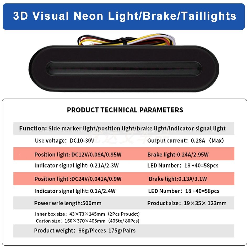 58LED light guide red and yellow two-color multi-function car cargo card towing water steering brake tail light flashing LED scanning