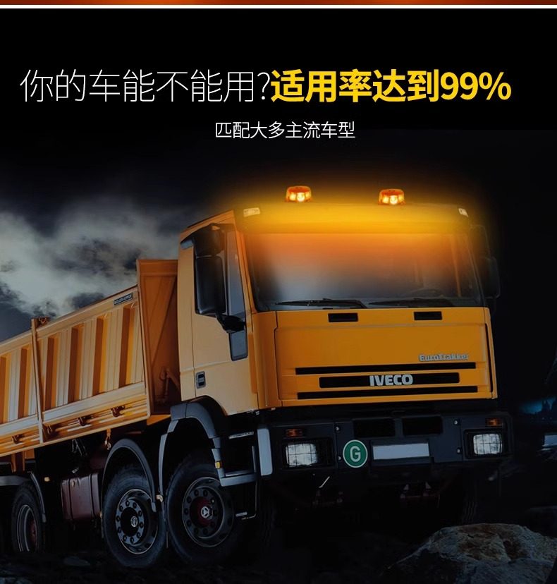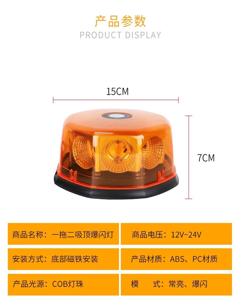 High-brightness COB flashing mushroom light, truck strong magnetic ceiling warning light, one drag and two open, round flashing warning light