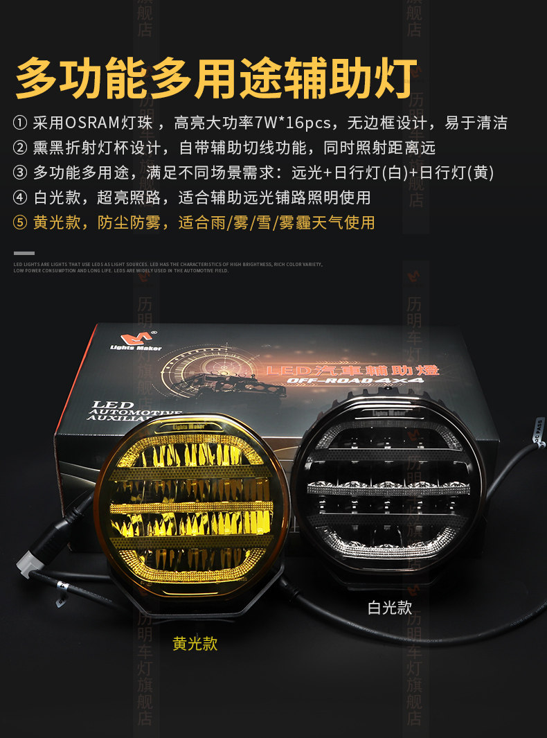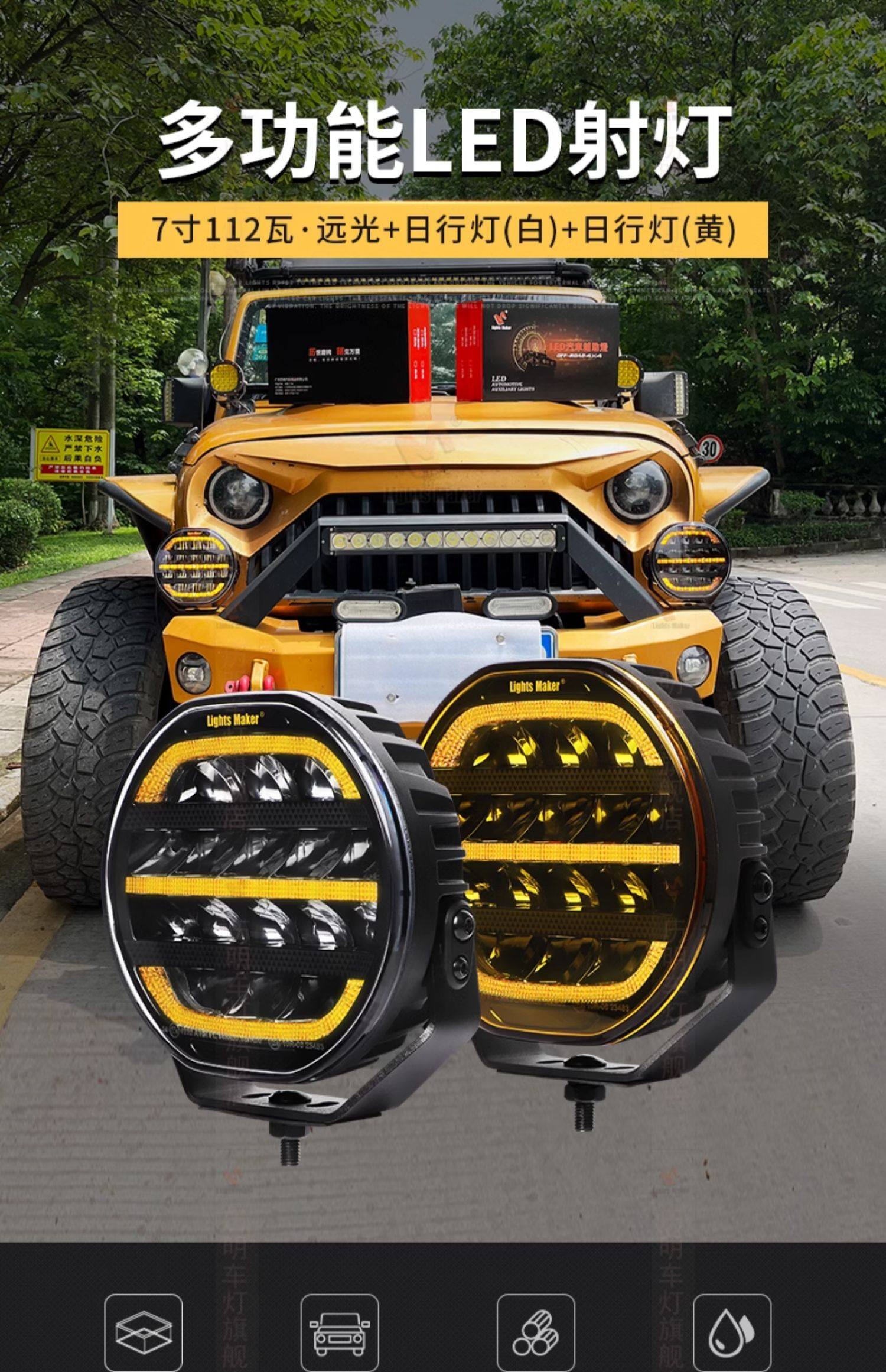 Liming off-road vehicle led spotlight 7 inch 112W front bar light multi-function horse auxiliary light refraction light super bright long-range light