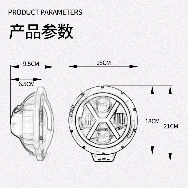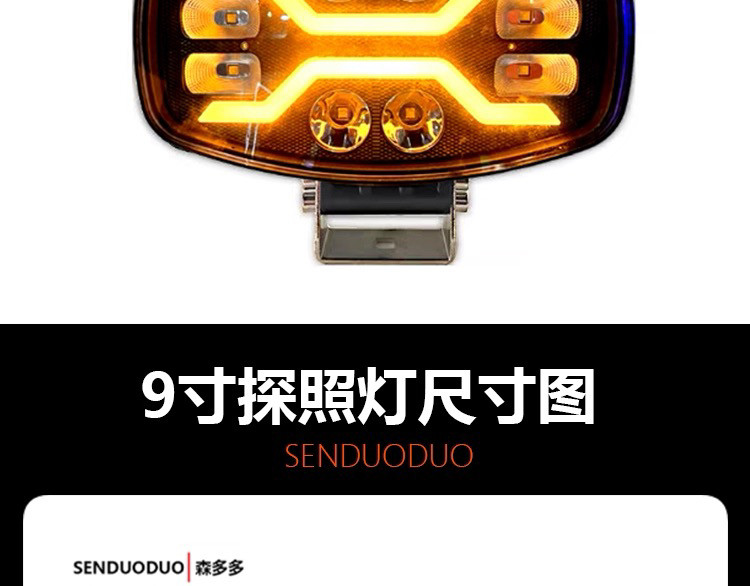 Oka 9-inch square spotlight truck truck truck modified led roof searchlight far and near light water turning spotlight